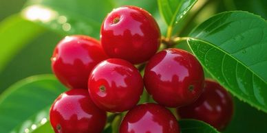 Acerola Cherry (Malpighia emarginata), a fruit of the Malpighiaceae family, is exceptionally rich in vitamin C, ranking just below Kakadu plum and Camu Camu in natural content.